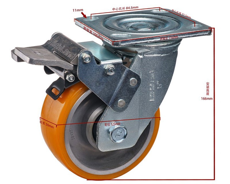 5寸重型活动平板双刹铝心聚氨酯轮(65重型黄色)