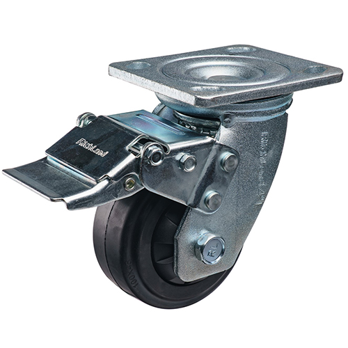 4寸活动平板边刹重型塑心弹力橡胶轮