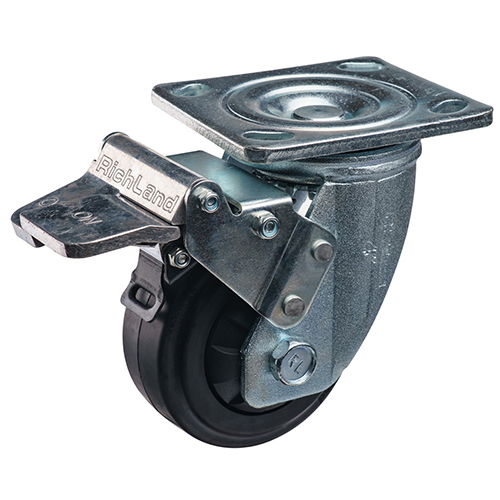 4寸活动平板双刹重型塑心弹力橡胶轮